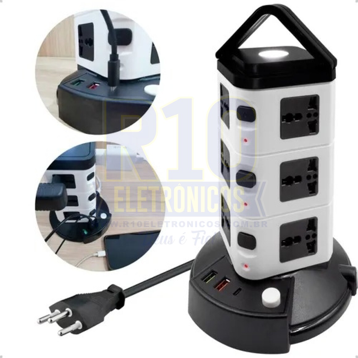 TORRE DE TOMADAS - 12 tomadas, 2 USB e 1 Type-C